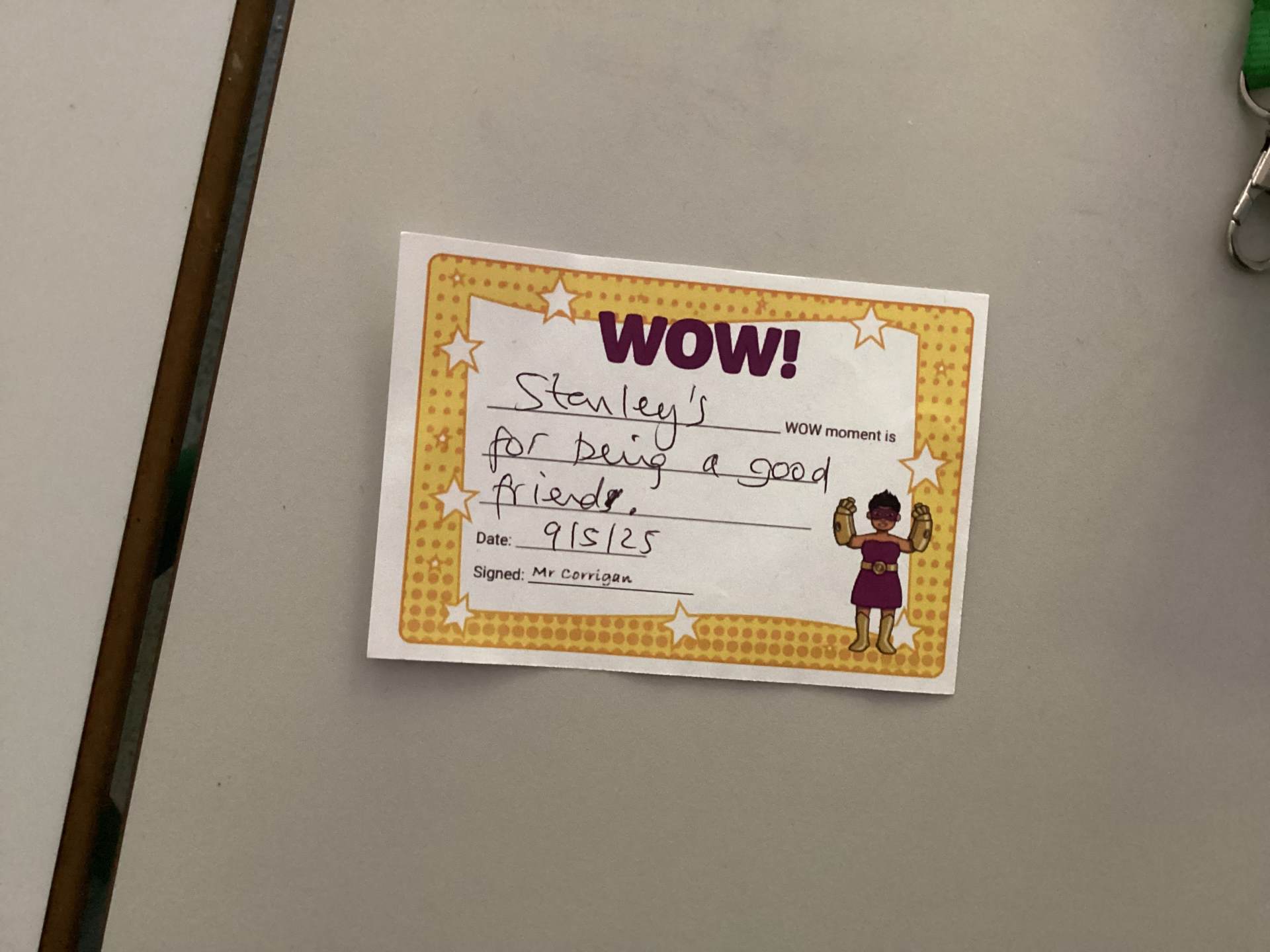 Mr Corrigan’s WOW moments go to Simisola, Lewis, Matthew & Stanley. For being good friends.