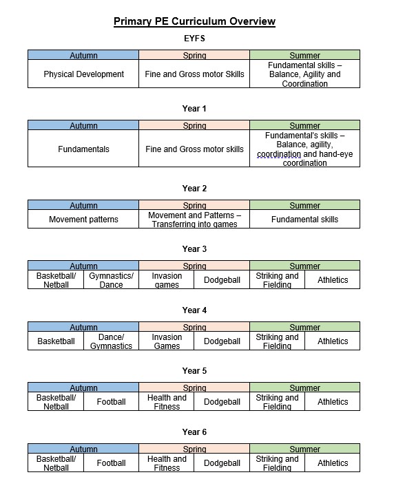 Intent 1: To provide equal opportunities to all children and young people through a wide and varied curriculum, enabling them to develop their knowledge, confidence, and self-esteem within PE.