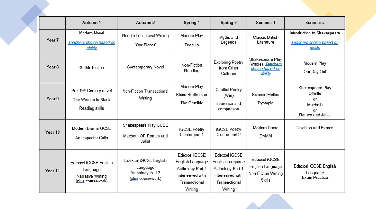 At Hollinwood, we adhere to Medium Term and Long Term plans, providing a comprehensive roadmap for our English curriculum. For a detailed overview of our plans, please see below.
